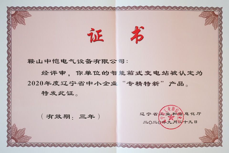 2020年度遼寧省中小企業(yè)“專精特新”產(chǎn)品