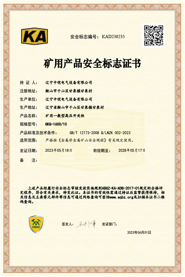 礦用一般型高壓開關(guān)柜GKG-1600/10